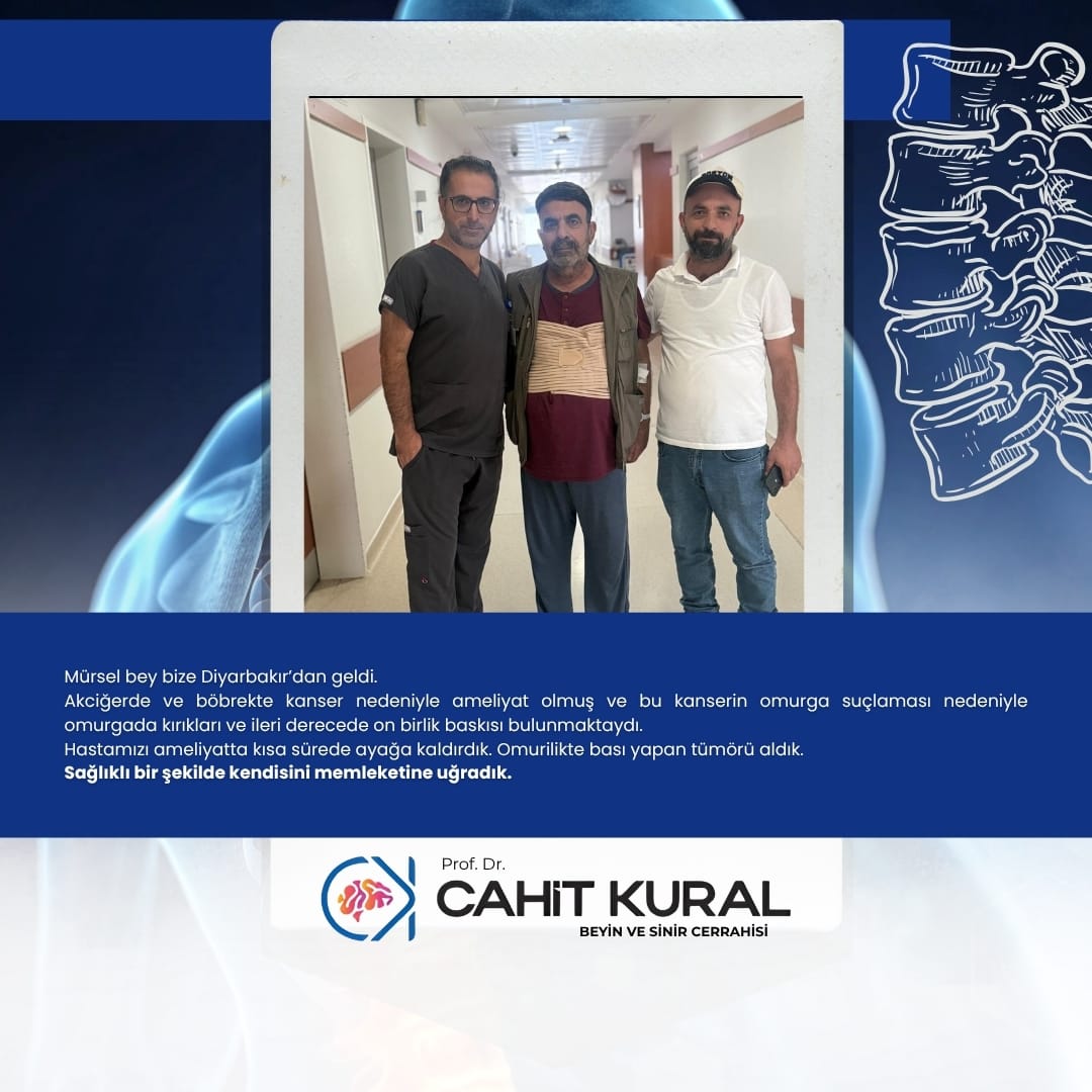 Prof. Dr. Cahit Kural, Sincan Lokman Hekim Hastanesi'nde Servikal Dar Kanal, Hipofiz Tümörleri, Epilepsi Cerrahisi ve Hidrosefali gibi nörolojik rahatsızlıkların tedavisinde uzmanlaşmıştır. Ayrıca Boyun Fıtığı, Bel Fıtığı, Beyin Tümörleri, Skolyoz ve Lomber Dar Kanal gibi durumlar için de kapsamlı tedavi seçenekleri sunmaktadır. Dr. Kural, hastalarına yönelik en uygun tedavi yaklaşımlarını belirleyerek, sağlık sorunlarının yönetimine katkıda bulunmaktadır.